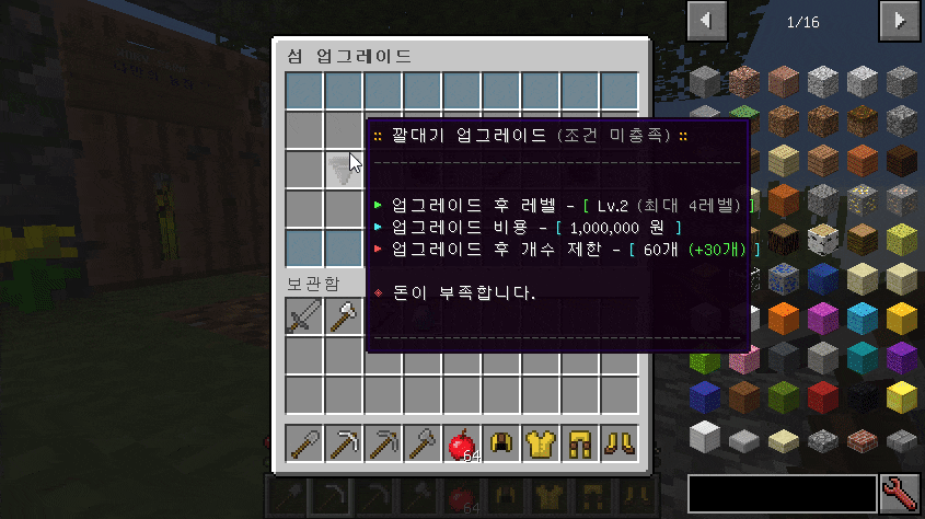 GUI로 유저들의 편의성 대폭 증가!! 섬 업그레이드 시스템!